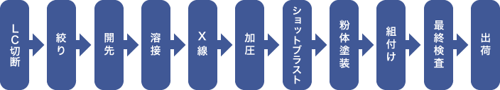 高圧ガスを扱う家庭用LPG容器や、業務用のバルク貯槽タイプのLPGボンベは、 高い安全性と耐久性が求められる保安部品であるため、品質管理は厳重であり、 高度なトレーサビリティが求められます。 バルク型の大型ボンベは全数検査を徹底し、 写真も撮って履歴を残します。