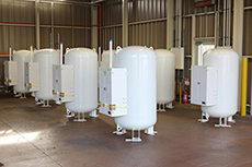 LPGバルク貯槽タンクは資材調達から切断、曲げ、溶接、組立から塗装に至るまで、一貫して同一工場内で製造します。